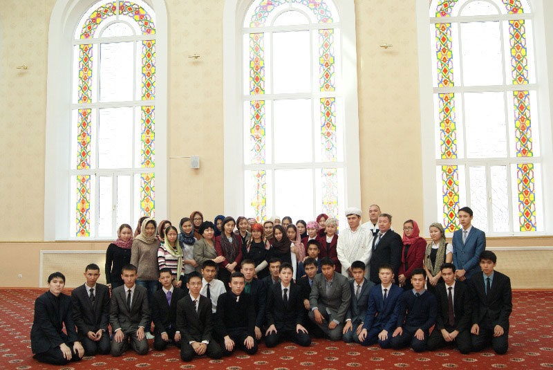 Орталық мешіттің найб имамы Мұратбек Қыстаубаев жылы жүзбен күтіп алып, мешіттің үлкен залында, асыл дініміздің құндылықтарын айтып, кешегі қазақ халқынан шыққан даналардың барлығы да медресесіде білім алып, елге танымал болған алаш азаматтары жайында сөз қозғады. Сонымен қазіргі жастардың діни білімі жоқтығынан кешегі Сирия еліне барып, құрбан болғандығы жайында айтылды. Міне бізді әлпешпет, аялап өсірген ата-анамыздың борышын өтедік пе? Ата-анамыз бізді ұлым жақсы білім алсын деп, ертеңгі күні сол мамандық адал иесі болсын,-деп ата-анамыз Алладан тілек тілейді. Сондықтан да жат ағымдардың көшіне ермеу үшін, екі дүниенің білімін алу, баршамыздың міндетіміз,деді облыстық мешітінің найб имамы Мұратбек Мұхтарханұлы.