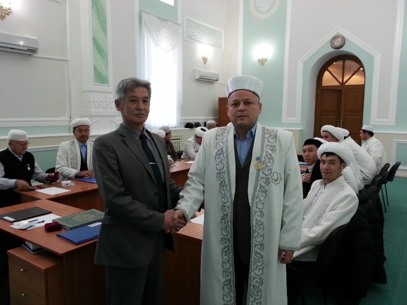 Маңғыстау облыстық Ішкі саясат басқармасының Дін істері бөлімі бастығы Иса Есенәлі өкіл имамға облыстың дамуы мен тұрақтылығына, діни ахуалға қосқан сүбелі үлесі үшін алғыс айтып, салтанатты түрде «Маңғыстау облысының 40 жылдығы» және «Ақтау қаласының 50 жылдығы» төсбелгілерін табыс етті.