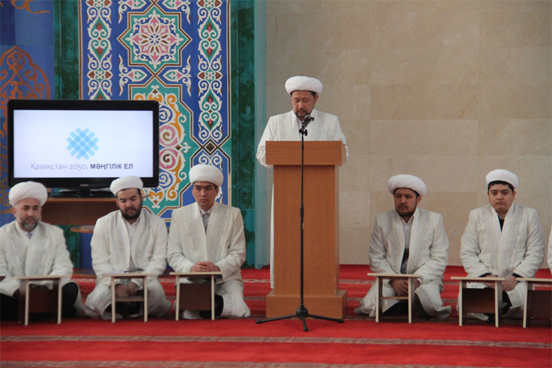Алдымен ҚМДБ-ның Астана қаласындағы өкілі, «Нұр Астана» орталық мешітінің бас имамы Наурызбай Өтпенов «Мәңгілік ел» идеясы баршамызды марқайтты» деген тақырыпта баяндама жасады.