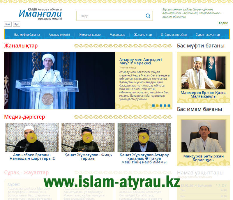 Солардың бірі – Атырау облыстық «Иманғали» орталық мешітінің діни танымдық сайты «www. islam-atyrau.kz» деген атаумен ашылып отыр. Өткен жылдың аяғында облыстың діни сайты кейбір себептерге байланысты өз жұмысын тоқтатқан болатын. Жуырда ол жаңа үлгімен, жаңа бағытпен қайтадан өз жұмысына кірісті.