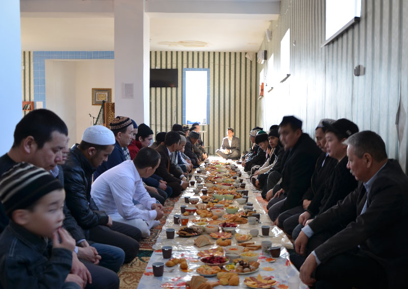 ҚМДБ-ның Атырау облысы бойынша өкілі Батыржан Берденұлының бастамасымен аталмыш мешіт имамы Алимов Мұнархан Шапенұлының ұйымдастыруымен ақ дастарханда аудан тұрғындары мен жамағаттары бас қосты. Өкіл имам қазіргі діни ахуал жайында, яғни үй ішіне-үй тігіп жатпай бірігетін уақыттың келгені жөнінде сөз етіп, сондай-ақ ұстазсыз мектеп қалыптастырмай арнайы мешіт жанындағы діни сауаттандыру орталығына білім алуға шақырды. Жиналған халық өкіл имамға және осы бас қосуды ұйымдастырып отырған имам А.М.Шапенұлына алғыстарын жеткізді.