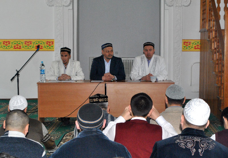 Алдымен жамағатпен тізе қосып бесін намазын оқыған имамдар кейін дін тұрғысындағы уағыз-насихаттарын айтты. Әңгіме барысында Ә.Сманов қазіргі күні жамағат арасында туындап жүрген мәселелердің ақ-қарасын ажыратып, адасушыларды райларынан қайтаруға тырысты. Дәстүрлі дініміздің ұстанған талаптарының дәлелді екендігін, Әбу Ханифа мәзһабының сүннеттің ажырамас бір бөлігі екендігін, ата-бабаларымыздың ұстанған жолында дәстүр мен діннің біте қайнасқандығын тілге тиек етті. Одан соң Ә.Дәуренбеков мешітке жиналған жамағаттың сұрақтарына жауап берді. Жамағат қойған сұрақтардың негізгілері жаназа мәселелеріне, сондай-ақ, қайтқан адамның жетісі, қырқы немесе жылдық садақасын беру секілді мәселелерге қатысты болды. Және де теріс ағымда жүрген жастарға мешіттерде өз алдарына топтасып дәріс алуларына рұқсат жоқтығын ескертіп, білімді тек мешіт имамдарынан, ұстаздардан алу керектігін айтты. Осыған байланысты жамағат арасында іріткі тудырмауын да атап өтті.