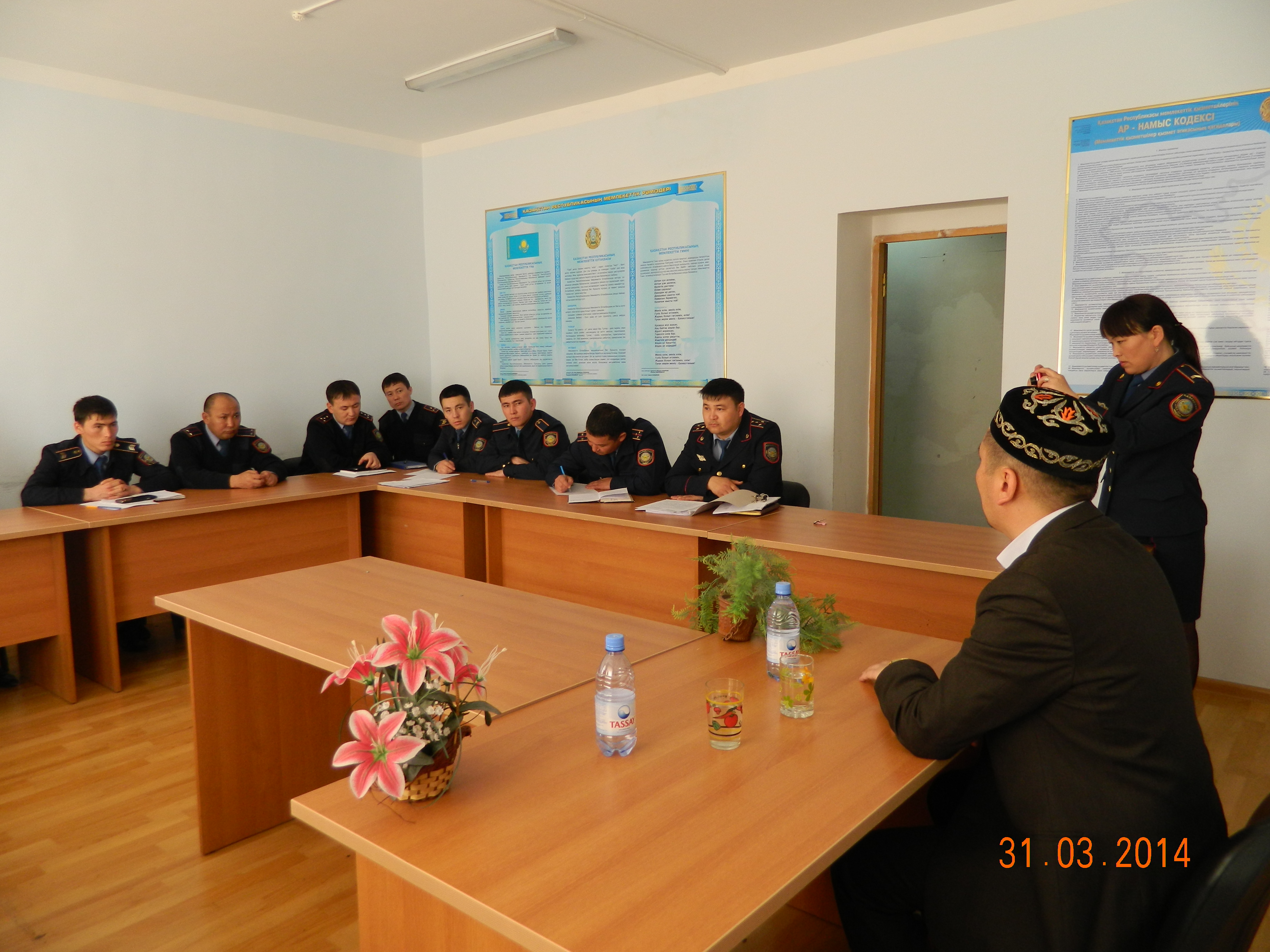 Наурыз айының 31-күні Маңғыстау облысының мамандандырылған күзет қызметі басқармасының қызметкерлерімен өкіл имам С.Сейтбеков «Суицид» тақырыбы бойынша кездесу өткізді. Шариғат бойынша өзіне өзі қол жұмсау ауыр күнә екенін баршамыз білеміз. Алайда соңғы уақытта өз өзіне қол салу оқиғалары жиілеп кеткені алаңдатады. Жасөспірімдер арасында болғандай ересектер арасында да көрініс беруде. Өкіл имам дін бойынша суицидтің қаншалықты ауыр күнә екенін, ақыреті тозақ болатынын көркем түрде жеткізе білді. Тәртіп сақшылары, яғни полиция қызметкерлері мәселеге қатысты және өздерін толғандырып жүрген дінге қатысты көкейдегі сұрақтарын сұрап, барынша белсенділік танытты.