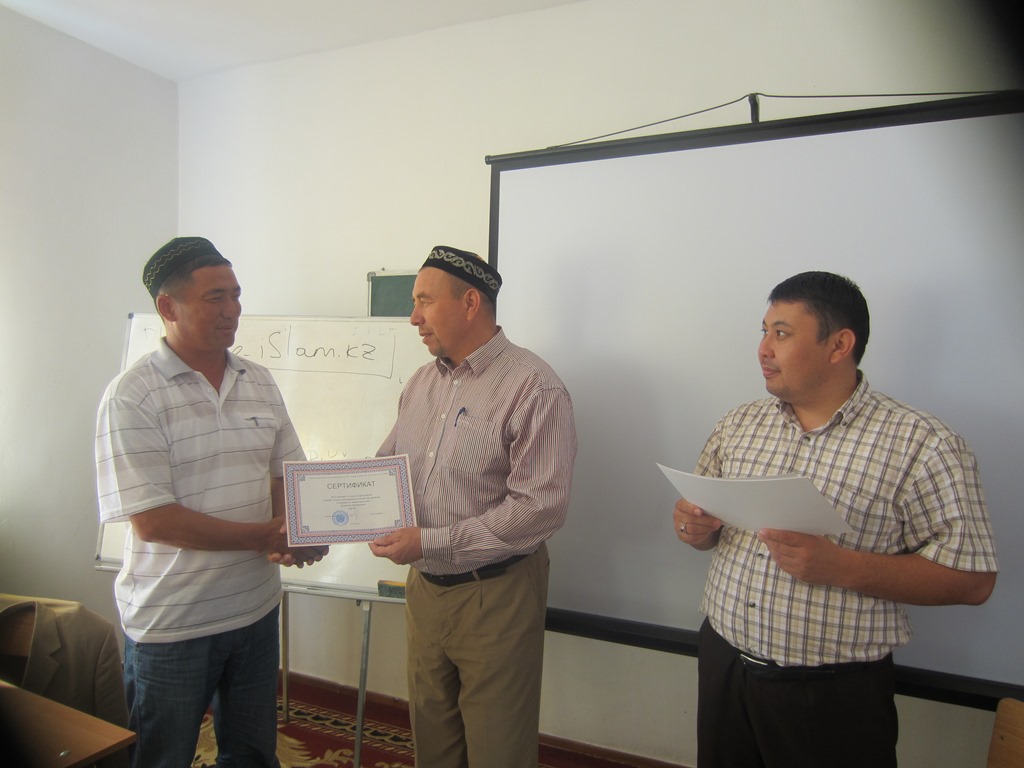Курстың соңғы күні имамдарға арнайы «Аңсар» АТО атынан сертификат берілді.