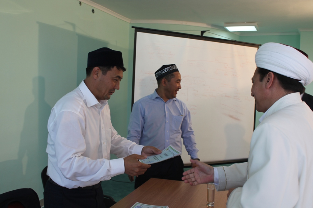 Семинардың аяқталуы облыс орталығы Өскемен қаласында болып өткен «Дін мен дәстүр – радикализмге қарсы» республикалық ғылыми-тәжірибелік конференциямен тұспа-тұс келгендіктен, конференция жұмысына қатысып шыққан Бас мүфти Ержан қажы Малғажыұлы мен наиб мүфти Серікбай қажы Ораз мешітімізге арнайы ат басын бұрып, имамдарға арнайы үлгідегі сертификаттарды табыс етті.