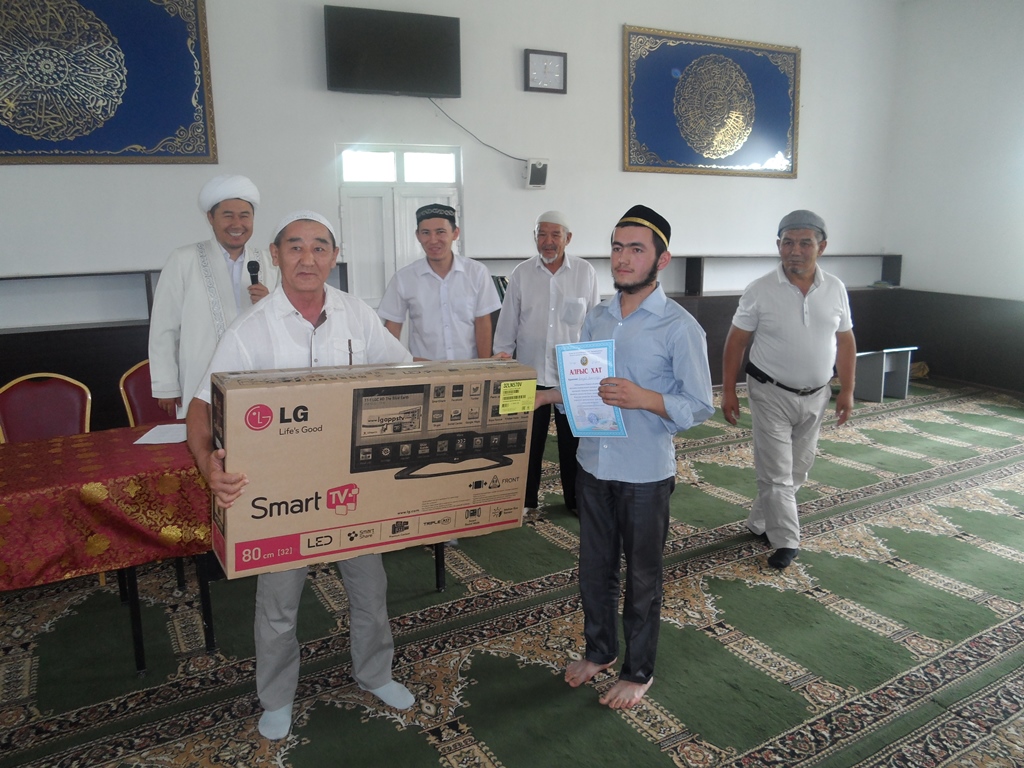 Қатысушылардың барлығына ынталандыру сыйлығы тапсырылса, жеңімпаздар ақшалай және заттай жүлдеге ие болды. Ал, отыз пара жаттағап, бірінші орынға шыққан Ахлидов Хажижакбар бас жүлдеге соңғы үлгідегі теледидарды иеленді.