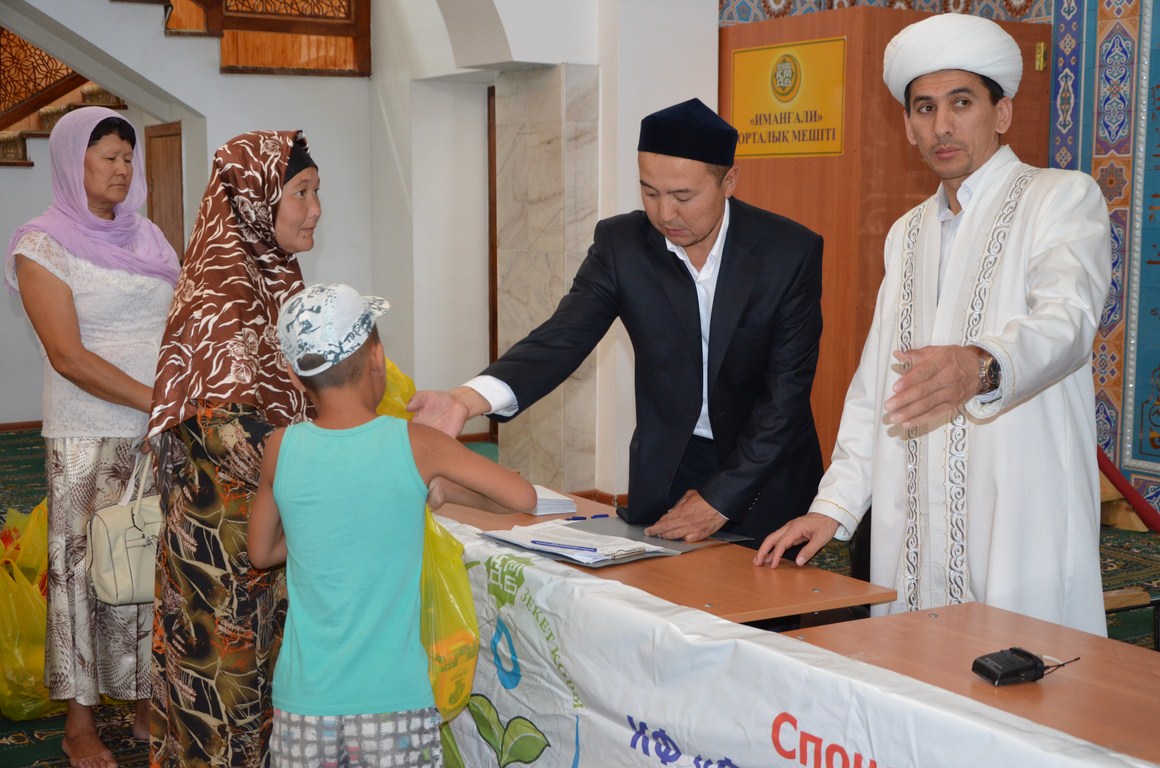 ҚМДБ-ның Атырау облысы бойынша өкілі, «Иманғали» орталық мешітінің бас имам Батыржан Берденұлы тарапынан өткізілген қайырымдылық шарасынан соң, «Иманғали» орталық мешітінің залында «Зекет қорының» Атырау облысы бойынша өкілі Сембай Жолдасовтың ұйымдастыруымен әлеуметтік жағдайы төмен мешіт намазхандарына азық-түлік және қаржылай түрде көмек берілді.