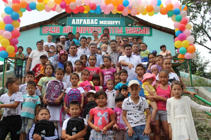 Отыз күн бойы оразаларын ұстап, қасиетті айды құлшылықпен өткізген мұсылман адамға сансыз сауаптар жазылады. Осы қасиетті айдан кейінгі Ораза айт мерекесі барша мұсылман қауымының арасында бауырмашылдықты, бірлікті арттырып, ата-ананың қамқорлығынсыз қалған жетім балаларға, жағдайы нашар отбасыларға қол ұшын созып, көмек көрсетуге тағы бір мүмкіндік тудыратын мереке. Осы орайда, айт мерекесімен құттықтау үшін "Алғабас" мешітінің ұжымы ауданымызға қарасты мектеп жасындағы балаларға және ата-ананың қамқорлығынсыз қалған жетім балалар үйінде болып, қайырымдылық көрсетті. Игі іс-шара аясында балаларға арнайы дайындалған дастарханнан дәм татты. Балалар дән риза болып, мешіт ұжымына аслғыстарын білдірді.