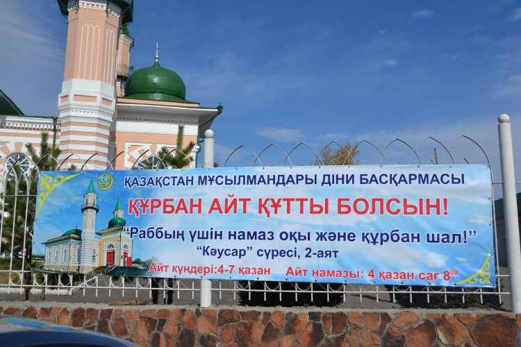 Қос мұнаралы орталық мешітінің ұйытқы болуымен Абай даңғылында, Ш.Уәлиханов көшелері бойында «Қасиетті айт мерекесі мүбәрак болсын!» және «Құрбан айт құтты болсын!» атты баннерлер орнатылды. Сондай-ақ, аталмыш мешіт ауласының «Құрбан айт құтты болсын!» атты баннер ілінді.