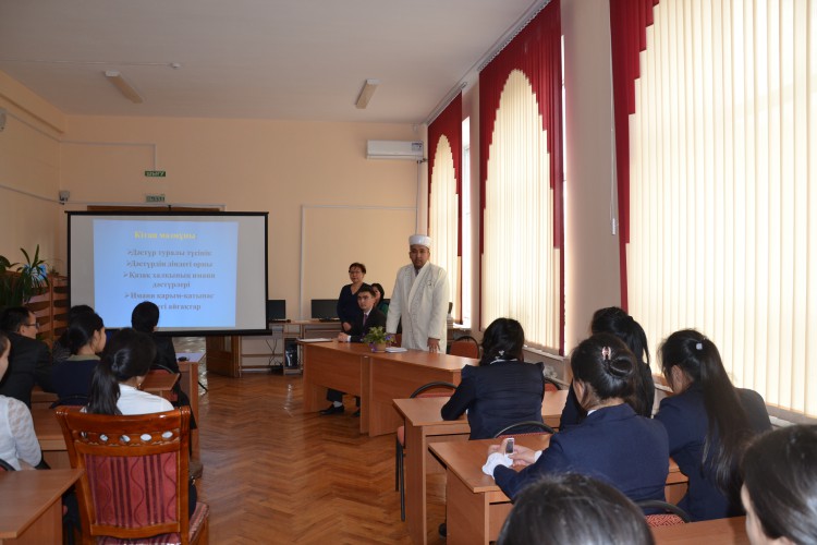 Кездесу соңында оқушылар көкейлерінде жүрген салт-дәстүрлерімізге қатысты сұрақтарын қойып, оларға толыққанды жауаптар алды. Жоғары сынып оқушыларына оқытылатын «Дінтану» пәнінің оқулық қорына толықтыру болсын, жас ұрпақтың санасына білім нәрімен бірге ұлттық құндылық - дәстүрді құрметтеу арқылы имандылықтың дәнегі егілсін, деген ниетте «Дін мен дәстүр» кітабы сыйға тартылды. Белгілі бір ұлттың адамзат өркениетінің ортақ өрісіне шығып, дамып жетілуі де, құлдырап төмен кетуі де осы ұлт дәстүрінің сақталуы мен бұзылуына байланысты. Дәстүр бұзылған жерде халықтың халықтығы бұзылады. Ал бұған керісінше, қалыптасқан дәстүрі бұзылмаған елдер халықтық қалпына селкеу түсірмей, өзіндік өмір сүру заңдылықтарын сақтай отырып, ел көшін заман талабына сай жетілдіре дамытып, алға ілгерілей береді. Мұндай елдің іргесі берік, мәртебесі биік болмақ!