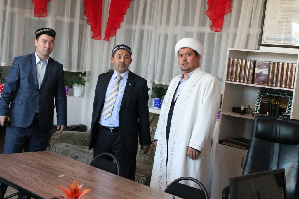 Алдымен 2013 жылы Бас мүфти Ержан қажы Малғажыұлы хазреттің қолдауымен ашылған «Ықылас» қарилар дайындау орталығында болып, ондағы оқып жатқан шәкірттердің жағдайын білді. Кездесу кезінде орталық директоры Ы. Майлан және дінтанушы Қ. Маджановтар өздерінің атқарып жатқан жұмыстары мен алдағы атқаратын жұмыс жоспарлары туралы қысқаша баян етті.