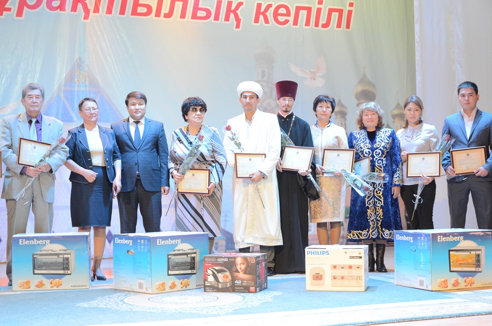 Мерекелік шарада облыс әкімінің орынбасары Айгүл Әжіғалиева барша қатысушыларға өңір әкімінің құттықтауын жеткізді. Сонымен қатар, ұлтаралық келісім мен дінаралық татулықтың нығаюына өзіндік үлесін қосып, үлгілі еңбегімен танылып жүрген түрлі сала қызметкерлері алғысқа бөленді. Өңіріміздегі діни тұрақтылық пен оның дамуына ерен еңбегі, сүбелі үлесі бар ҚМДБ-ның Атырау облысы бойынша өкілі, «Иманғали» орталық мешітінің бас имамы Батыржан Берденұлы және «Әт-Тақуа» мешітінің наиб имамы, теолог-дінтанушы Қанат Жұмағұл облыс әкімі Бақтықожа Салахатдинұлының алғыс хатымен марапатталды. Сондай-ақ, Дін істері басқармасының алғыс хаты Индер аудандық «Әйіпқажы» мешітінің бас имамы Ералы Қамзағалиевқа табыс етілді.
