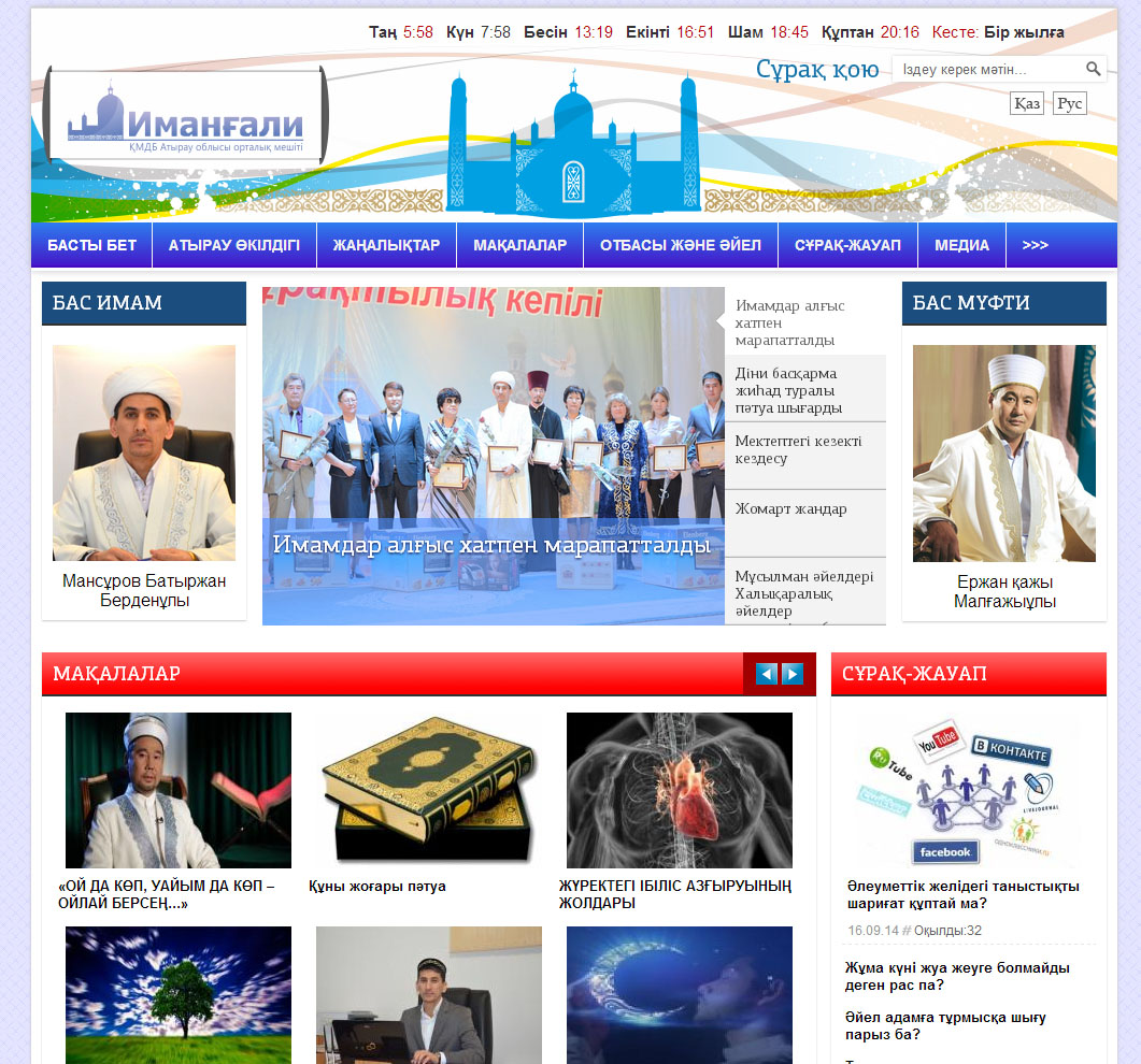 Жуырда ҚМДБ-ның Атырау облысы бойынша өкілі, «Иманғали» орталық мешітінің бас имамы Батыржан Мансұров оқырман талғамына сай сайтты жаңарту, әрі жаңғырту жұмысын қолға алған болатын. Игі бастама бүгін өз жемісін беріп, islam-atyrau.kz діни-танымдық сайты мақалалар, сұрақ-жауап, аудио, медиа дәрістер, жұма уағыздар, ғибрат, отбасы, балаларға базарлық айдарлары аясында жұмыс жасауда.