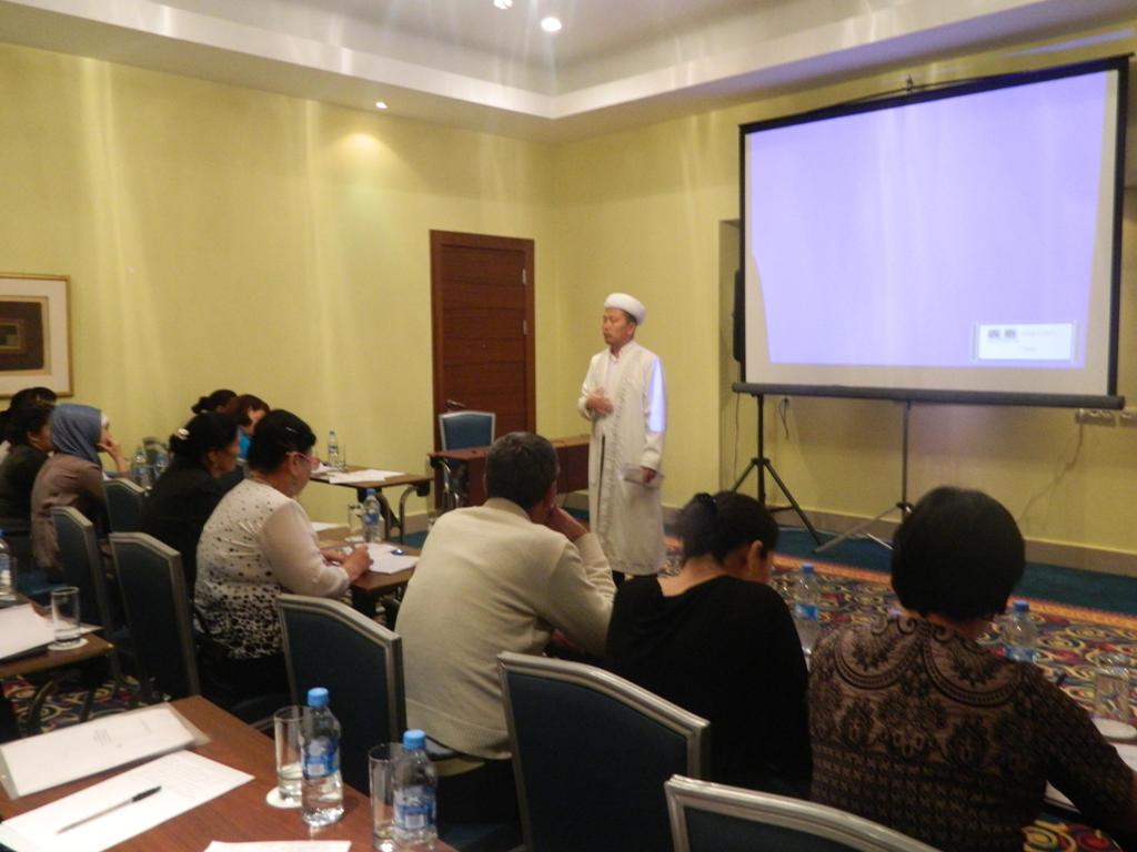 Түске дейін 3 топқа бөлінген аудиторияда білім саласы қызметкерлері, ақпараттық насихат тобы қызметкерлері және дінтану пәні мұғалімдеріне арналып семинар тренингтер жүргізілді. «Жаңа діни қозғалыстардың әрекеті және Қазақстанның рухани қауіпсіздігі» тақырыбында баяндама жасаған Есбосын Меркешұлы тәуелсіздік алған жылдардан бері елімізде Ислам дінін ұстанушылардың саны көбейіп келе жатқандығын, алайда Ислам атын жамылған ағымдардың қой терісін жамылған қасқыр іспетті өз ықпалдарын жүргізуге тырысып әрекет етуде екендігін айтты. Әйтсе де мұндай әрекеттер мемлекет тарапынан реттеліп, арнайы Заң бойынша тоқтау салынуда екендігін жеткізді.