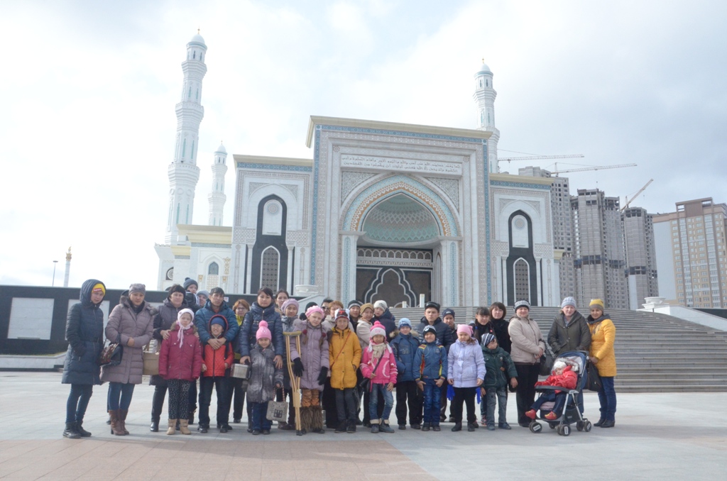 20 бала және 15 күтушіден тұратын саяхатшыларды Астана қаласын аралату үшін «Степногорскавтотранс» ЖШС автобуспен қамтамасыз етті. Мешіт басшылығы мен Әлеуметтік қорғау бөлімінің мамандары балаларды қаланың ең көрікті жерлері: Ипподром, Әзірет Сұлтан мешіті, «Думан» ойын-сауық кешені және Мемлекеттік мұражайды аралатып, балаларды үлкен қуанышқа бөледі. Сонымен қатар, Әзірет Сұлтан мешітінде балаларға арналып дастархан жасалып, түскі ас берілді.