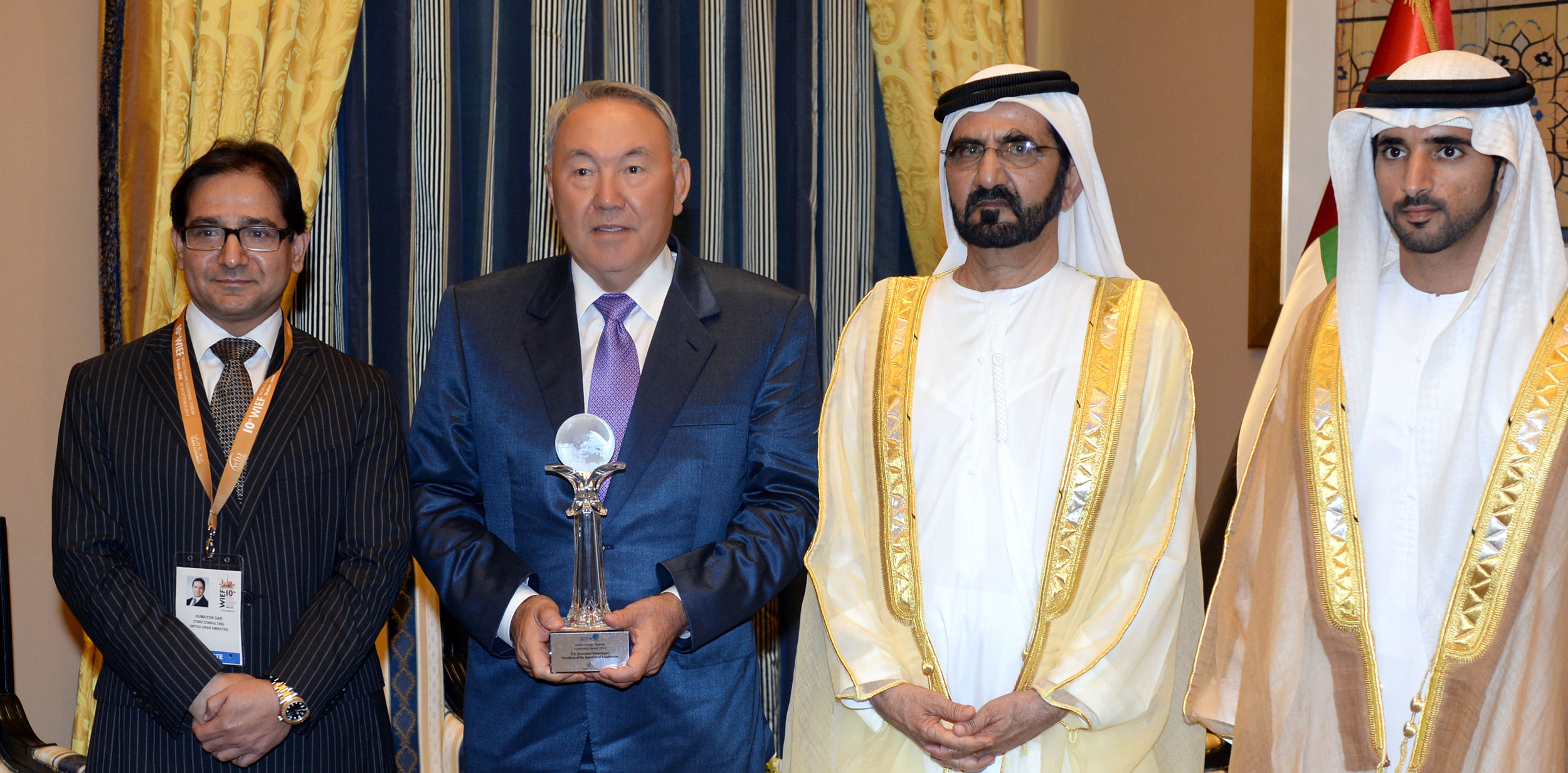 10-шы Дүниежүзілік ислам экономикалық форумының аясында Қазақстан Президенті Нұрсұлтан Назарбаевты Global Islamic Finance Awards (GIFA) ұйымының «Исламдық қаржы бойынша жаһандық көшбасшы» сыйлығымен марапаттау рәсімі болып өтті. Мемлекет басшысына бұл награданы «Edbiz Consulting Limited» компаниясының бас атқарушы директоры доктор Хумайон Дар тапсырды.
