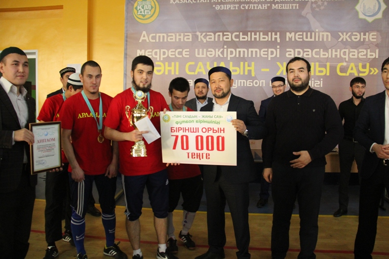 Тартысты өткен футбол сайысында бәйгенің үшінші орнын «Әс-Сәлам» мешітінің құрама командасы иеленіп, 30 000 теңге ақшалай сыйақы мен арнайы диплом табысталды. Ал, бүгінгі аламанда «Арландықтардың» арынына өз биігінде төтеп берген «Әзірет Сұлтан»мешітінің «Сұлтан» командасы жеңіс тұғырының екінші сатысынан көрінді. Осылайша күмісті місе тұтқан «Сұлтандар» қанжығаларына 50 000 теңгені байлап, арнайы марапатқа ие болды.