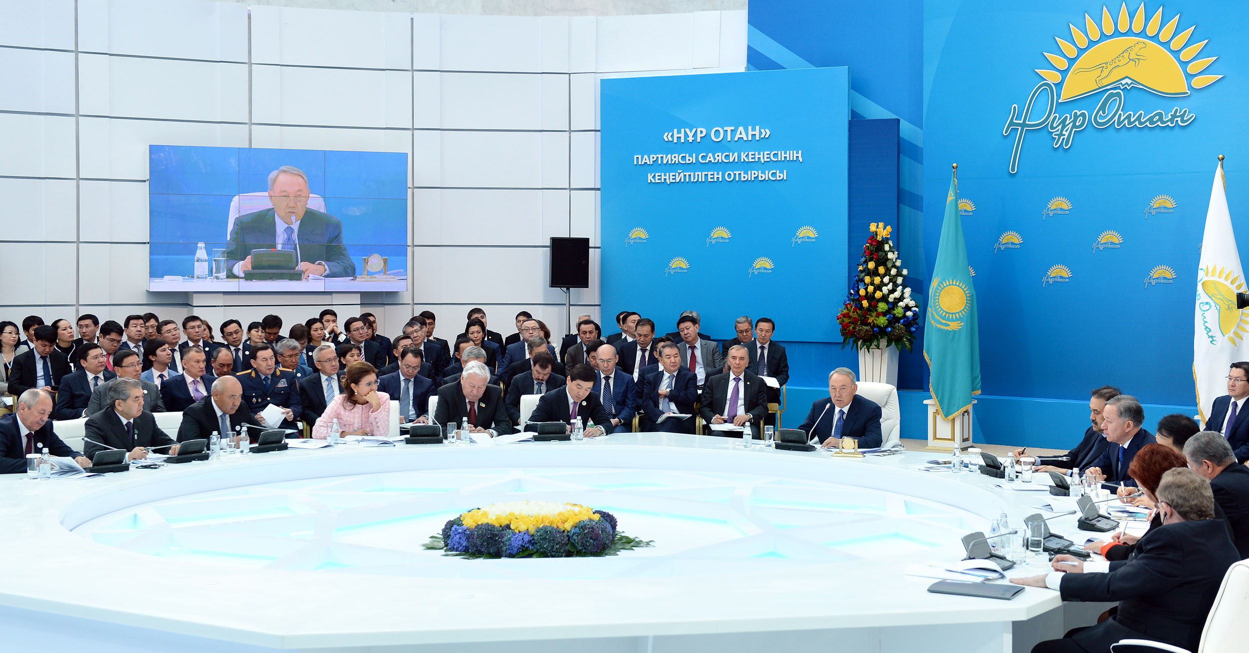 Бүгін менің тапсырмам бойынша Үкімет белсенді жұмысқа кірісіп кетті. Біз 2015 жылға арналған республикалық бюджеттің параметрлерін қайта қарадық. Бұл дұрыс, өйткені, біздің экспорттық шикізат ресурстарына бағаның құлдырауы бюджеттің кіріс бөлігіне қаржы түсуін төмендетуге алып келуде. Бірақ, соған қарамастан, Үкімет алдына оңай емес, алайда, нақты міндет – барлық әлеуметтік міндеттемелерді толық көлемінде қамтамасыз ету міндеті қойылып отыр.