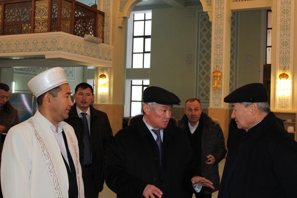 Облыстың Бас имамы Нұрлан Байжігітұлы мешіт құрылысының тарихынан басталған аймақтағы барша игілікті істерді баяндады. Кезегінде Бердібек Сапарбаев облыстық мешіттің Бас имамына және католик, православ, яхуди дін басшыларының иықтарына қазақы дәстүрде ақиықты шапан жапты.