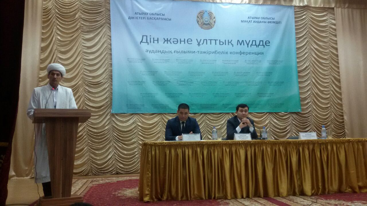 Атырау облысы, Мақат аудандық мәдениет үйінде «Дін және ұлттық мүдде» тақырыбында конференция өтті. Конференцияға Атырау облысы Дін істері басқармасының басшысы Еркінбек Шохаев, ҚМДБ-ның Атырау облысы бойынша өкілі, «Иманғали» орталық мешітінің бас имамы Батыржан Мансұров және Алматы облысынан арнайы келген теолог-исламтанушы Ербол Құдабаев қатысты.