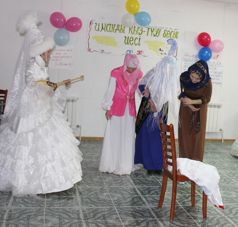 «Инабат» тобы қыз ұзату, беташар сияқты дәстүрлерді қойылыммен көрсеткен болса, «Шаңырақ» тобы бесікке салу, тұсау кесер сынды ұлттық дәстүрлерімізді паш етті. Көрермен ретінде келген әйелдер жамағаты арасынан сұрақтар қойылып, ойындар ойнатылған бұл сайыс өте қызықты әрі ғибратқа толы өтті.