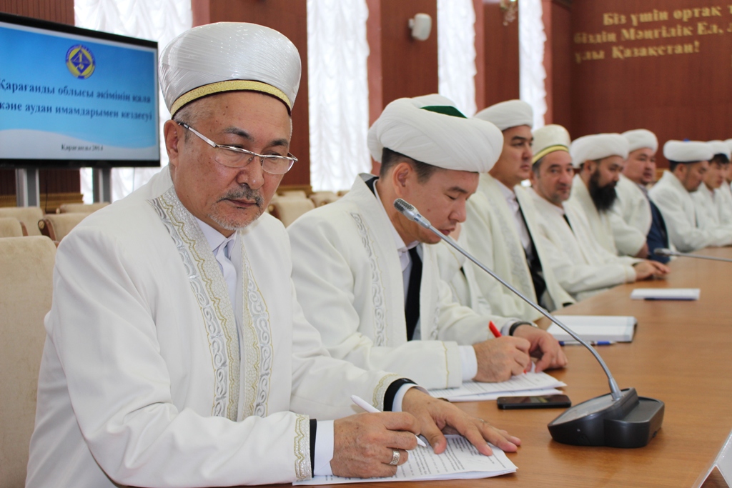 ҚМДБ-ның Қарағанды өңірі бойынша өкіл имамы Өмірзақ қажы Қазкенұлы қала, аудан мешіттерінің бас имамдарымен облыс әкімі Нұрмұхамбет Әбдібеков өткізген кездесу жиынына қатысты.