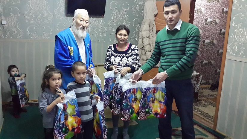Мешіт қызметкерлері тарапынан көмекке зәру болған қала тұрғындарына: 10 балалы ананың бүлдіршіндеріне сыйлықтар үлестірілді. Сондай-ақ, жалғызбасты көп балалы анаға және III топ мүгедек жанның әрқайсысына 15 000 теңге көлемінде қаржылай, 20 отбасына 7-8 келі қой еті түрінде көмек көрсетілді.