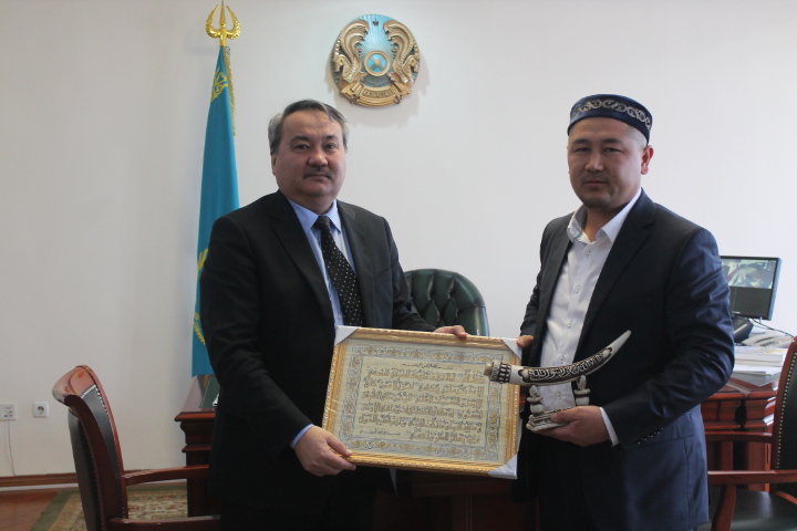 Аудан имамы әкімді адамзаттың асыл тәжі болған Пайғамбарымыз (Оған Алланың игілігі мен сәлемі болсын) дүниеге келген мәуліт айымен құттықтап, сыйлық табыс етті. Кездесу барысында ауданға қарасты мешіттердің жағдайы, ондағы жылу мәселелері толықтай шешілгендігі, сондай-ақ 2015 жылы ауданда атқарылатын шаралар барысы сөз етілді.