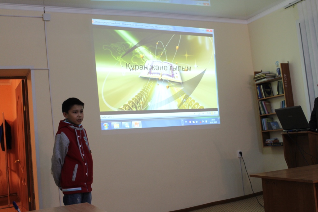 Бақтарын сынап, жарысқа түскендер Құранның бір ғылым жайлы баяндалған аятын таңдап алып, оны ғылыми негізде жарыстың талабына сай слайд немесе бейнеролик арқылы түсіндіріп беруге тырысты. Әлемдік ғылым жетістіктерінде айтылатын Құран таңғажайыптары да жұрт назарына ұсынылды. Сөйтіп, бұл байқауда өзінің білімімен жұртты таңқалдырған Сұлтанғазы Есенжолов бас жүлдені иеленді. Ал қалған жүлделі екі орын Ербол Жанабеков пен Қайролла Шыңғысқа бұйырды.