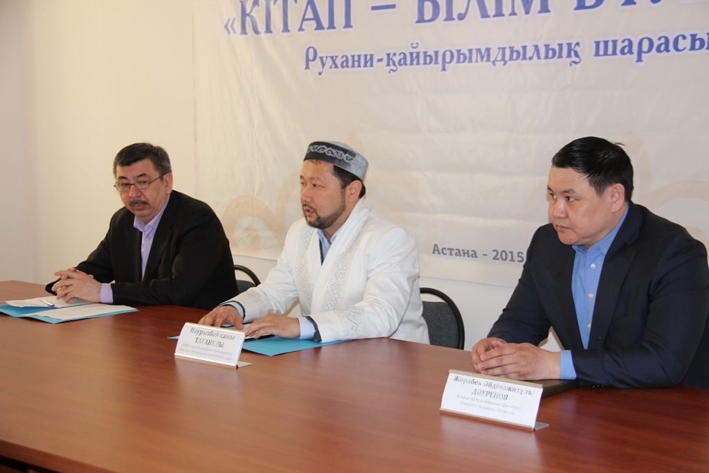 Қазақстан мұсылмандары діни басқармасының Астанадағы өкілдігі «Нұр Астана» орталық мешітінің баспасөз орталығында «Кітап – білім бұлағы» атты рухани-қайырымдылық шарасы игі істің тұсауын кесті. Мазмұнды шараға ҚМДБ-ның Астанадағы өкілі, «Нұр Астана» мешітінің бас имамы Наурызбай қажы Тағанұлы, ҚР ІІМ Қылмыстық атқару жүйесі комитетінің Астана қаласындағы департамент басшысы Қазбек Әлімбеков және Астана қалалық Дін істері басқармасының өкілі Назимбек Дүйсебаев қатысты.