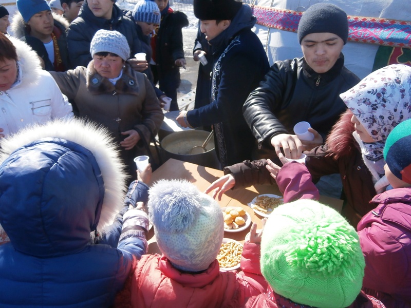 Сонымен қатар, киіз үй алдында көпшілікке ұлттық наурыз көже таратылды. Жайылған ақ дастарханнан неміс, ағылшын, жапон, итальян туристері қонақ болып, дәм татып, алғыстарын білдірді.