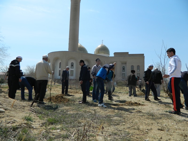 Наурыз айында мешітің көптеген жамағаттары өз қаржыларына көшет сатып алып, өз қолдарымен мешіт ауласына көшеттер отырғызған болатын. Бұл жолы ақсақалдар «Бисмиллә»-мен бастап көшеттер отырғызып, артынан дұға етті.