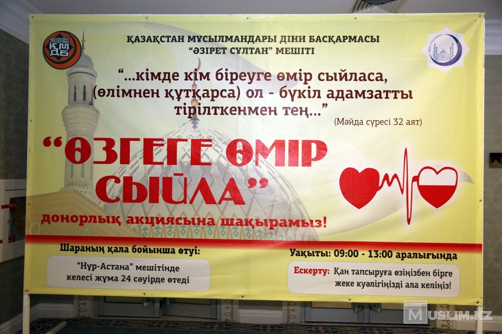 ҚР Денсаулық сақтау және әлеуметтік даму министрлігінің «Трансфузиология ғылыми-өндірістік орталығы» қызметкерлеріне бөлінген мешіт бөлмесі кезек әдеттегідей ұзақ болды. Қасиетті жұма күні жақсылық жасауға талпынып, сауапты іске құлшынғандардың қатары көп болғанымен, қан қабылдау тек түске дейін ғана өткізілді.