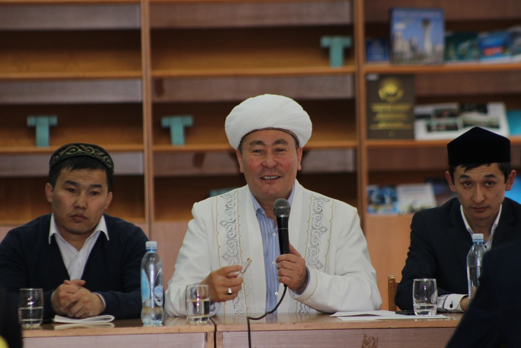 Бас имам Асылхан қажы студенттерге ең бірінші кезекте ҚМДБ-ның құрылу тарихын, сіңірген еңбегін кеңінен түсіндіріп, қазіргі таңда ҚМДБ-ның төрағасы, Бас мүфти Ержан қажы Малғажыұлының халыққа атқарып жатқан елеулі қызметін айтып кетті.