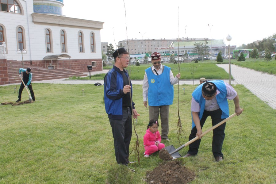 Тазалық жұмыстарына белсене атсалысуға облыстық әкімшілік, қалалық «Көркейту» мекемесі, және мешіт жамағаттары көптеп келді. Мешіт айналасының тазалығынан кейін, көлемі 3 гектарды қамтитын мешіттің ауласына шырша, алма, шие, сары өрік және тағы басқа да, аулаға көрік беріп тұратын әртүрлі гүлдердің көшеттері отырғызылды.