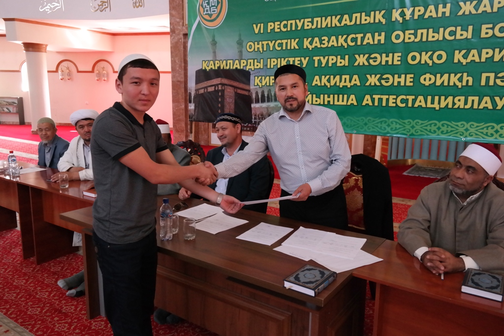 Сонымен қатар ОҚО Қариларына жатқа білу деңгейі, тәжуид, қирағат, ақида және фиқһ бойынша аттестациялау өткізілді. Аттестациялау комиссиясы құрамына елімізге танымалғалымдар мен қарилар кірді. Олар: 1. А.Керімбек (ҚМДБ-ның ОҚО бойынша өкілі, облыстық орталық мешітінің Бас имамы, комиссия төрағасы), 2. Ә.Сманов (ҚМДБ «Сарыағаш» медресесінің директоры), 3. К.Садықов (Қари, «Ықылас» қарилар дайындау орталығының ұстазы), 4. Абдулалим Жабир (Қари, Мысыр), 5. Мухаммад Мунтасир (Қари, Мысыр), 6. Худайбергенов Улугбек (Қари, Шымкент), 7. С.Олжабай (Республикалық Қарилар орталығының директоры, Астана).