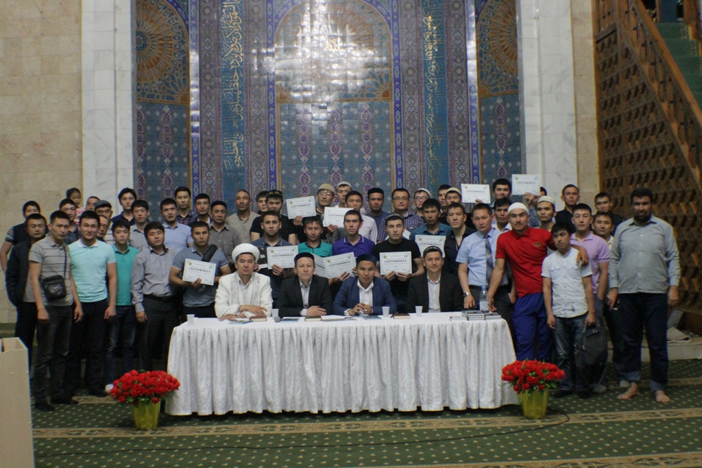 Алматы орталық мешіті жанындағы діни сауат ашу курсында Ақида, Фиқһ және Құран дәрістерінің І-ші және ІІ-ші кезеңін аяқтаған шәкірттерден емтихан алынып, сертификат табыс етілді.