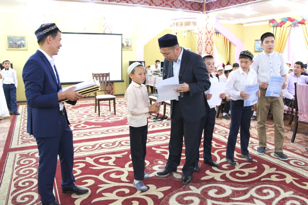 Облыс имамы С.Сейтбеков үздік деп танылған балаларға сертификат пен марапат қағаздарын тапсырды. «Ел болашағы атанар , егемен еліміздің ертеңі сендерсіңдер. Біздің Отанымызға иманды, ержүрек, ата –анасын сыйлайтын, кішіге үлгі, үлкенге қамқор болатын жастар қажет. Ендеше сіздерден зор үміт күтіп, алған білімдеріңіз елге қызмет етуге, ата –анаға жақсылық жасауға, жақсы азамат боп өсуге септігін тигізіп, ұлтымыздың иманды жастарының қатарын молайтады деп сенемін», -деді С.Сейтбеков.