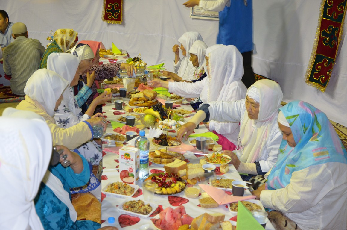 Иә, биылғы «Иманғали» орталық мешітінде жайылған рамазан дастарханы шынында жылдағыдан мүлдем өзгерек. Мешіт ауласына құрылған алты қанатты үш киіз үй 400-ден астам жамағатқа ауызашар қызметін көрсетуде. Аталған үш киіз үйдің өз атаулары да бар. Қазақы нақышпен әсемделген киіз үйдің біріншісі қарттар мен қадірлі қонақтарға, екіншісі әйелдер жамағатына, ал үшінші киіз үй жастар жамағатына қызмет көрсетіп келеді.