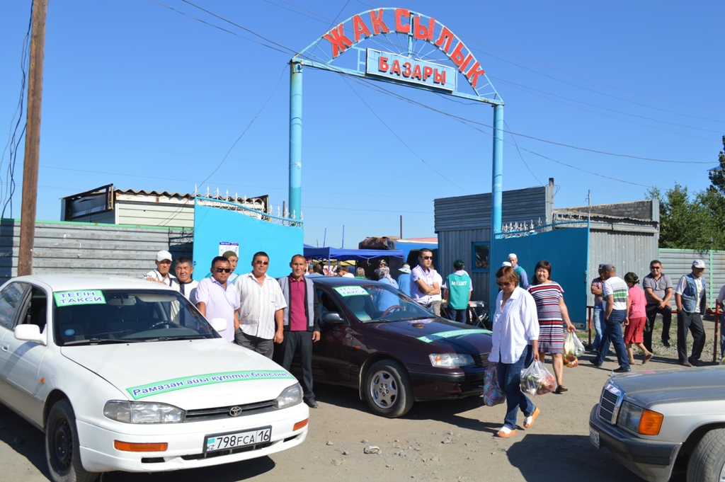 Жексенбі күні, ел бір күнгі демалысында «Жақсылық» базарына барып, азық – түліктерін, керек - жарақтарын қамтамасыз етіп қалатын кез. Келушілер базардың кіре берісінде «Рамазан айы құрметіне, тегін такси» - деген жазуы бар, сап түзеген он үш жеңіл автокөліктерге таңдана да, таңырқай қарады. «Мешіт» - деген жазуы бар жасыл жекет киген жігіттер ел қолындағы жүктерін көтерісіп, көліктерге отырғызып жатты. Мешіт имамы Думан Нәдірұлы: «Бұндай ізгі шаралар алдағы діни мерекелерде жалғасын таппақ» - деп өз тілегін білдірді. Осындай жақсы іске куә болған ел арасында «такси апа» аталып кеткен, ақсамайлы Оразхан Есбайқызыда жастар ісіне разы болып, «тегін такси» ісіне бел шеше кірісіп кетті.