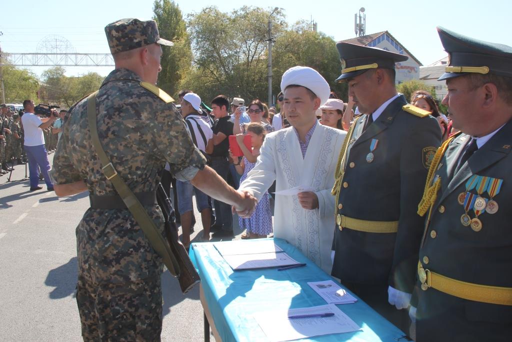 Қызылорда облыстық «Ақмешіт-Сырдария» мешітінің найб имамы Улжаев Бақыт әскерге аттану алдында тұрған жастарға «Отанды сүю иманнан» тақырыбында уағыз-насихатын айтып, Отанды қорғау турасында тұщымды ойларын жеткізді.