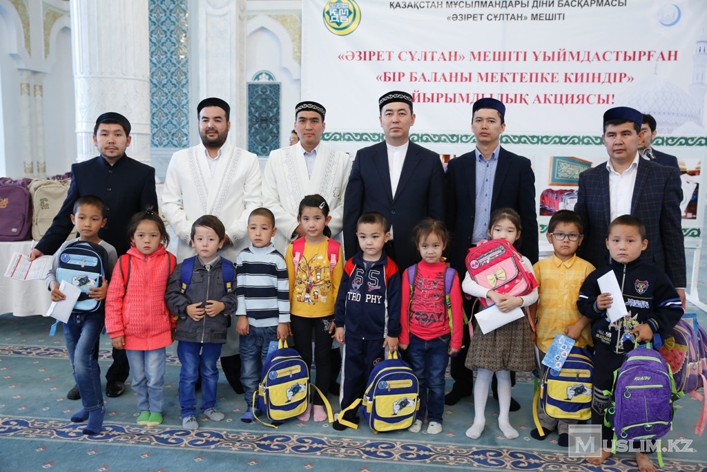 Бүгін «Әзірет Сұлтан» мешітінде «Бір баланы мектепке киіндір!» атты қайырымдылық акциясы болып өтті. Жаңа оқу жылы қарсаңында еліміздегі әлеуметтік аз қамтылған немесе асыраушысының бірінен айырылған, тұрмысы төмен отбасыларға көмек көрсетіп, оқушыларды мектеп формасы және қажетті құрал-жабдықтармен қамтамасыз ету – соңғы жылдары еліміздегі құлшылық ордаларының дәстүрлі акциясына айналған игі шара. ҚМДБ-ның төрағасы, Бас мүфти Ержан қажы Малғажыұлының бастамасымен жолға қойылған бұл игі шара бүгінде еліміздің түкпір-түкпірінде жалғасып келеді. Баспасөз беттерінде жарияланып жатқан жаңалықтарға зер салсаңыз, еліміздің барлық қалаларында «Мектепке жол» акциясы ұйымдастырылып, мешіт қамқорлығына алған оқушылардың жаңа оқу жылына сақадай-сай екенін байқауға болады.