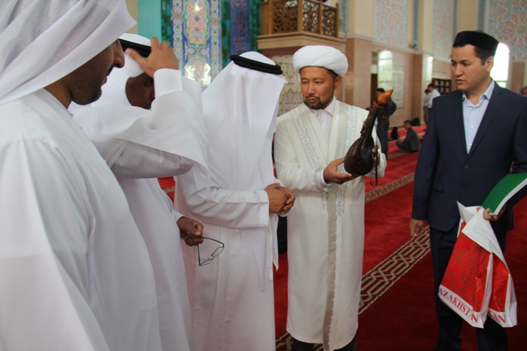 Мәртебелі мейманды Қазақстан мұсылмандары діни басқармасының наиб мүфтиі Наурызбай қажы Тағанұлы қарсы алып, Астананың ажарына әр берген құлшылық ордасымен таныстырды.