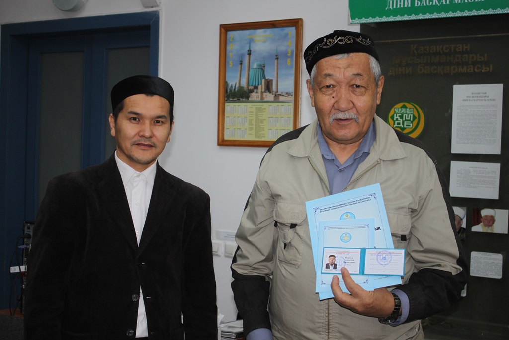 Куәлік тапсыру рәсімінде облыстық өкіл имам Н.Исенов: «Алланың үйі болған мешіттердің шариғи талаптарға сай атқарып жатқан іс-қызметтеріне тұрақты көмек көрсетіп, дәстүрлі дініміздің аясында әдет-ғұрыптарымыздың атқарылуына үлкен қолғабыс жасап келе жатқан сіздер қарапайым молда ғана емес, халықтың рухани ұстазысыздар. Біз сіздер арқылы халықты тәрбиелейтін боламыз. Алда мешіттер атынан қызметші молда ретінде діни рәсімдерді үлкен жауапкершіліккпен атқаратын боласыздар»,-деді.