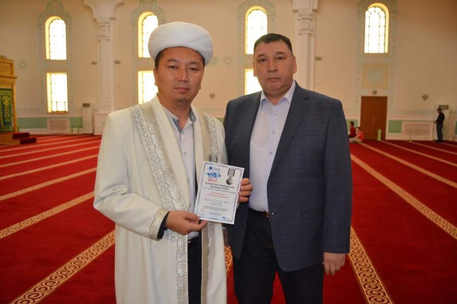 Филиал басшысы Жаңбырбай Матаев өкіл имамның қызметіне , дін саласында атқарып жүрген еңбегіне алғыс білдіріп, партияның арнайы дайындатқан , «Қазақ хандығы 550 жыл» медалін тапсырды.