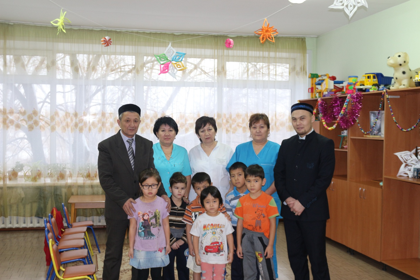 Қаламыздағы туберкулезге қарсы емдеу сауықтыру балалар шипажайына арнайы барып, мекеме қызметкерлерін мәуліт мерекесімен құттықтап, сауапты амалдардың игілігі турасында сұхбат жүргізді. Салтқа айналған дәстүрі бойынша балаларға арналған бағалы ойыншықтар, мекеме еденіне төсейтін үш кілем тарту етті.