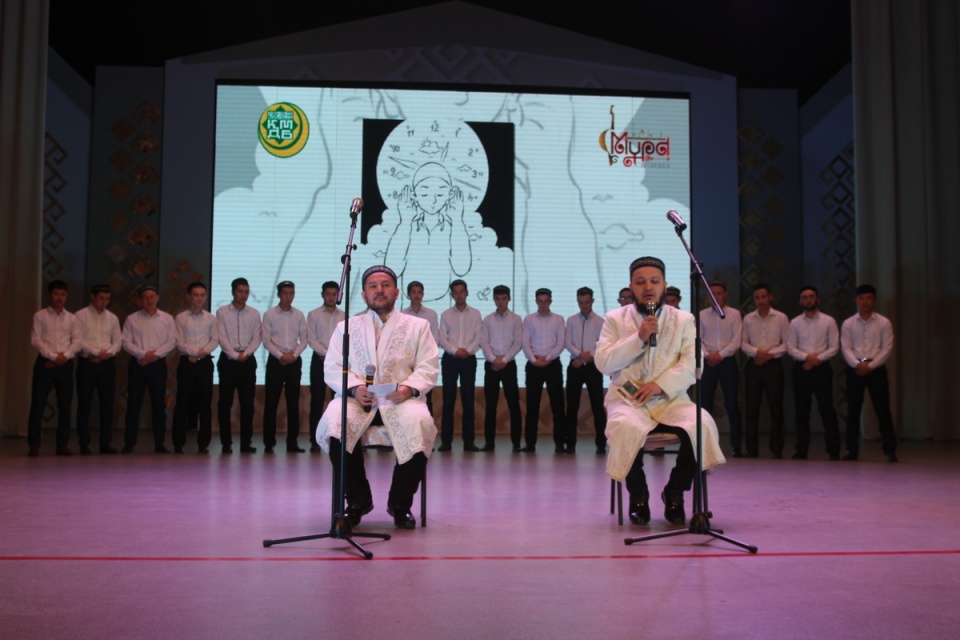 Ораз Баймаханов пен Махмуджан Асадуллаев бастаған «Һибатулла Тарази» мешітінің шәкірттері Мәуліт оқыды. Халыққа танымал әнші Сержанәлі Әлібек қос әнімен Аллаға шүкір, Пайғамбарға (с.ғ.с.) салауат айтты.