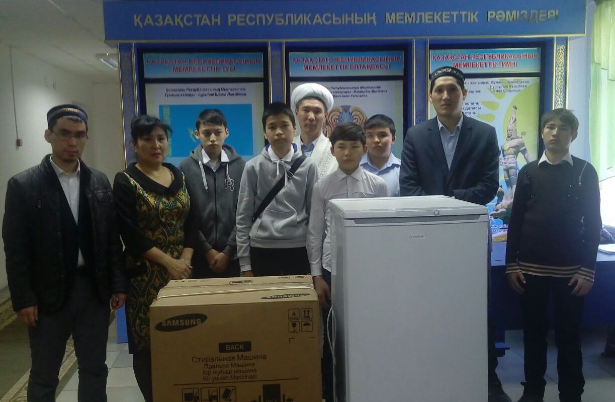 Аталмыш мектеп интернатына қайырымдылық сесебінен соңғы үлгідегі жаңа тоңазытқыш пен кір жуу машинасы сыйға тартылды.
