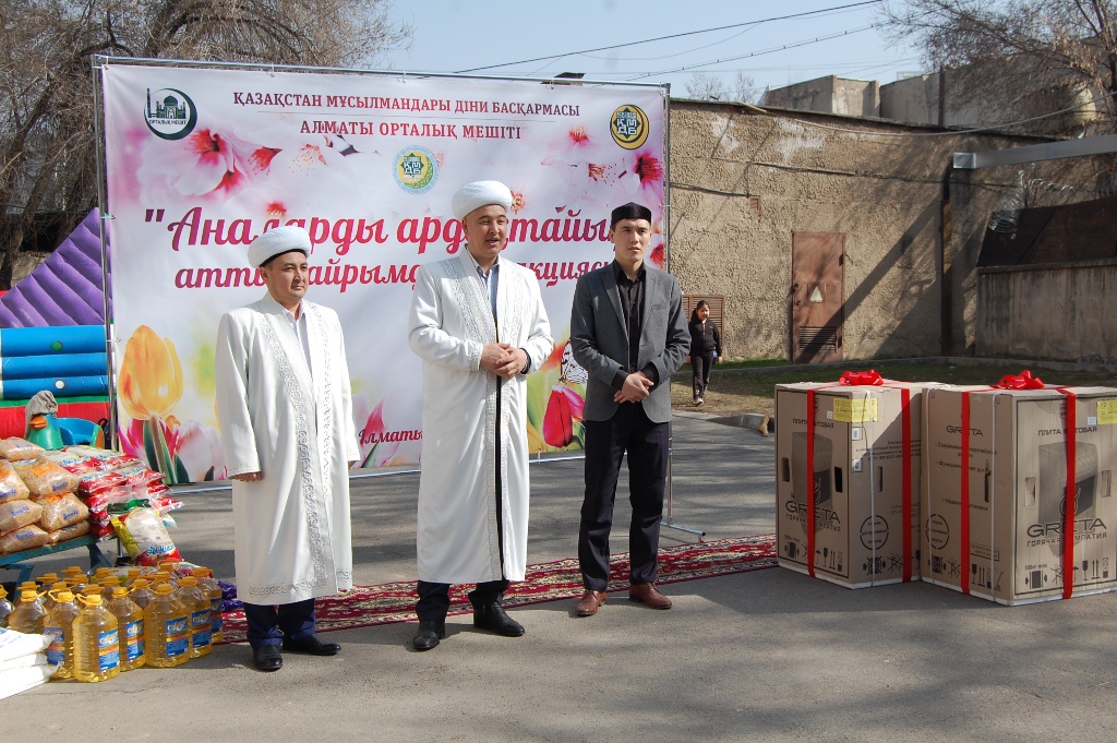 Алматы қаласы, Бостандық ауданында орналасқан үйде тұратын көп балалы және жалғыс басты аналарға құрмет көрсетілді. Әлеуметтік жағдайы төмен отбасыларға Алматы қаласының Бас имамы Нұрбек қажы Есмағанбет заманауи үлгідегі жаңа екі газ пеші мен әр отбасыға бір айлық азық түлік сыйға тартты.