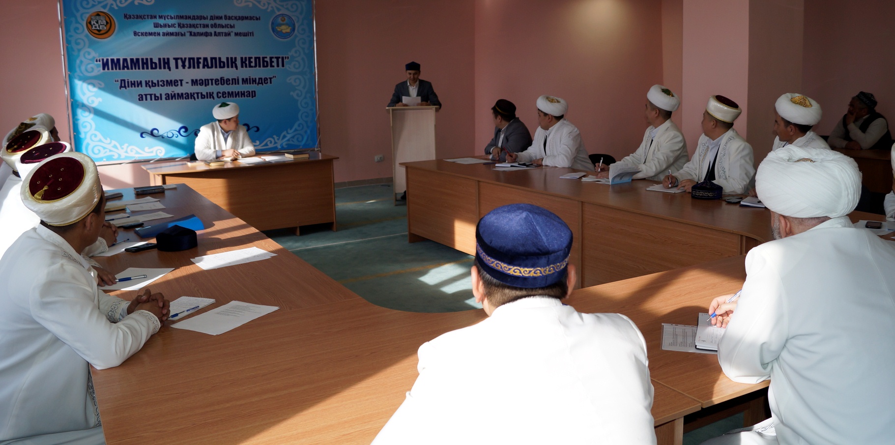 Осы құжаттардың имамдардың санасына сіңіру, ондағы ұстанымдармен талаптарды талдау мақсатында ҚМДБ-ның Өскемен аймағы өкілдігі, Шығыс Қазақстан облыстық «Халифа Алтай» мешітінде «Имамның тұлғалық келбеті: Діни қызмет-мәртебелі міндет» атты семинар өтті.